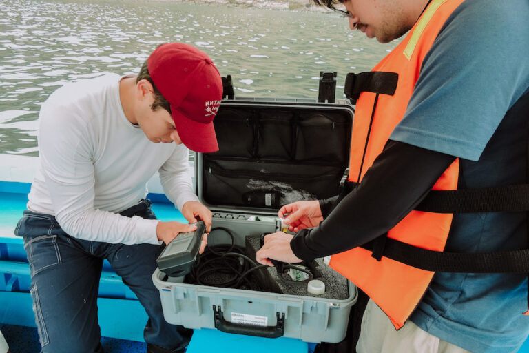 De acuerdo con Mires, “estos nutrientes se agregan para que [las plántulas] resistan mejor el tiempo que pasarán fuera de su ambiente durante el viaje a Pucusana, ya que en el trayecto se pueden generar burbujas”. Los envases luego se acomodan en una caja térmica con refrigerante que es trasladada a Pucusana en un viaje de tres horas y media. En el muelle de esa caleta, un botero espera a los científicos para embarcarse hacia El Carbón.