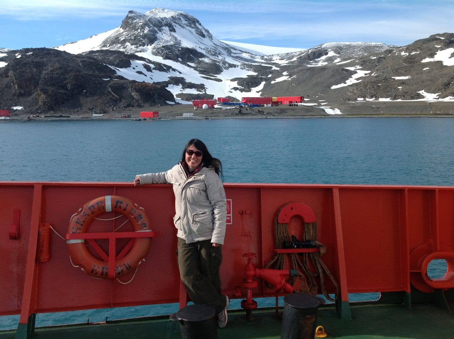 La geóloga italiana en la Antártida, abordo del buque español Hespérides, en 2013. Foto: cortesía Graziella Bozzano