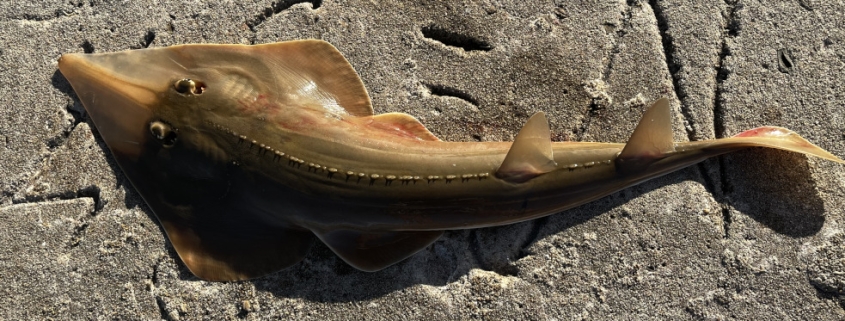 El pez guitarra tiene un hocico largo, triangular y translúcido con el que busca crustáceos, moluscos, poliquetos y pequeños peces. Foto: cortesía Mar Azul Uruguayo